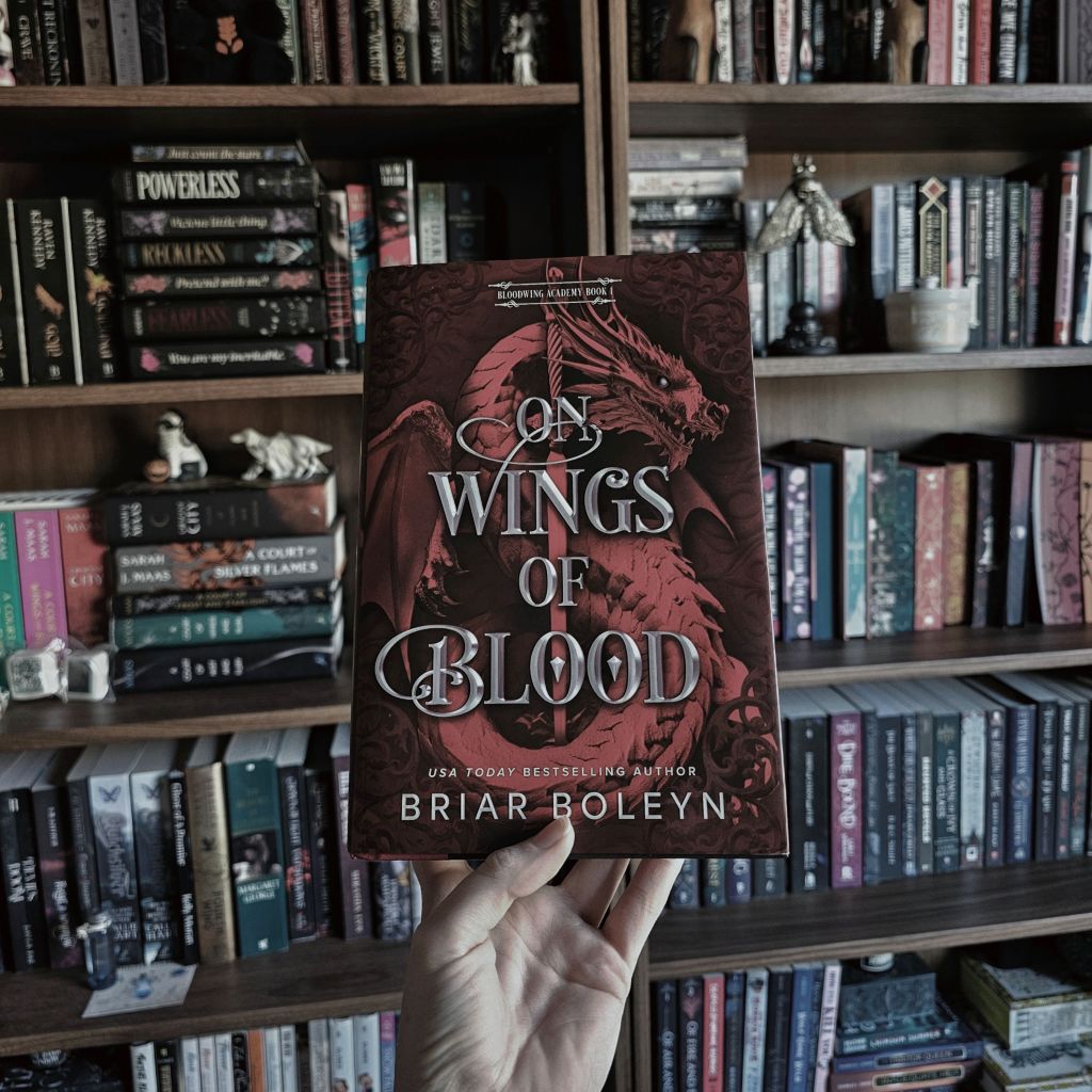 On Wings Of Blood by Briar Boelyn was so much more than I expected. After defeating her fae tyrant of a grandfather, Medra Pendragon believed she was dead; instead, she woke up in another world — one run by vampires known as Highborns. Due to her appearance, red hair and pointed ears, Medra was forced before a council who believed she was the long lost heir to the extinct Dragon Rider bloodline. There, she was forcibly bonded to the asshole who found her, Blake, then was compelled to attend a war college where she’ll have to prove herself and her strength to stay alive. That and figure out how to be a Dragon Rider with no dragon…